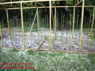 Das Foto zeigt die nahezu komplett vernichtete Anpflanzung nach einem Hagelschauer am 26. Mai.