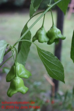die inneren Teile der Früchte sind sehr scharf, die äußere Glockenform ist erträglich scharf |