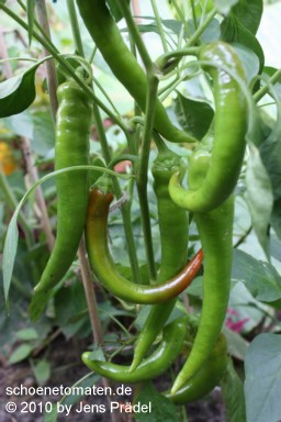 Ziemlich scharfe, dünnwandige Früchte, die sich gut trocknen lassen. |
