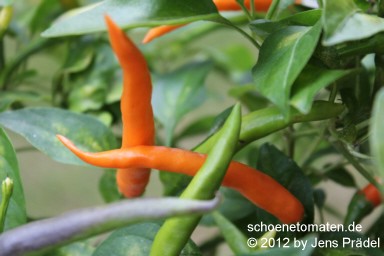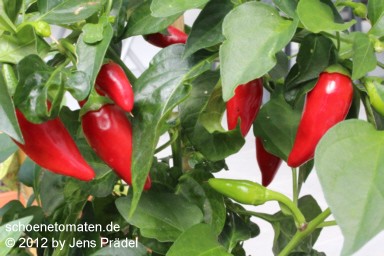 Abhängig davon, ob die Früchte bei Sonne reifen konnten, ist diese Sorte schon fast unangenehm scharf. |