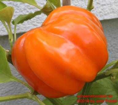 wunderschöne, meist ebenso breite wie hohe, extrem zerknautschte, teils wirklich lustig geformte, über orange nach rot abreifende Früchte