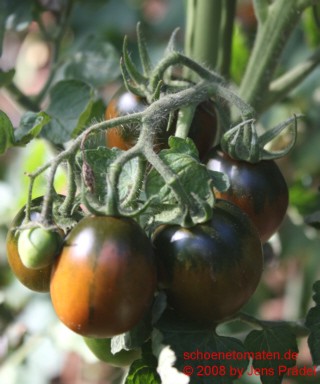 Manchmal tauchten in einer Traube plötzlich breitrunde, fleischtomatenähnliche Früchte auf. |