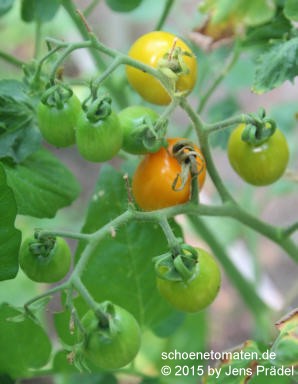 sehr kleine Pflanzen (ca. 0,5 m), begrenzt wachsend, Buschtomate