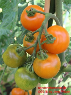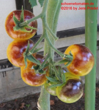 Hierbei handelt es sich um eine auf eine Kartoffel veredelte Cocktailtomate. Leider gibt es keinen Hinweis, um welche Tomaten- und Kartoffelsorte es sich handelt.