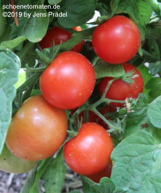 kleine (ø 2,5 bis 3,3 cm), 5 bis 10 g schwere, runde, rote Früchte