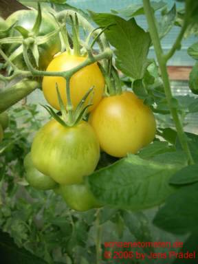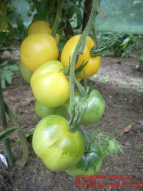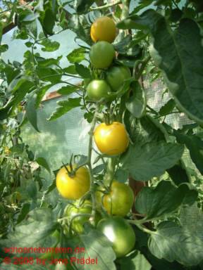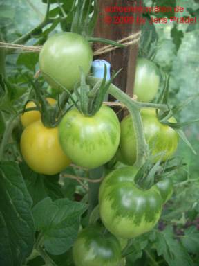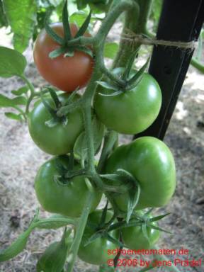 Eine Pflanze brachte rote Früchte gleicher Form mit ähnlichen nicht ganz so milden Geschmackseigenschaften hervor.
