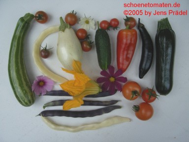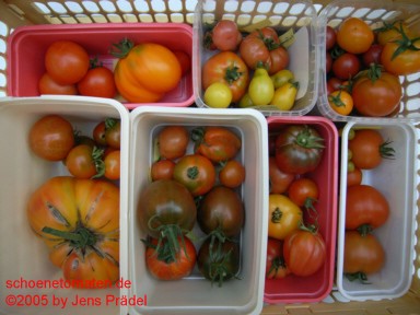 Miss Kennedy, Feuerwerk, Laternchen, Polish Heart, Narancs, Santa Ana, Schimmeig Greg, Beuteltomate aus El Salvador, Black Cherry, Japan Golden Pear, Schmatzefein, Golden Glow, Brin