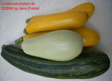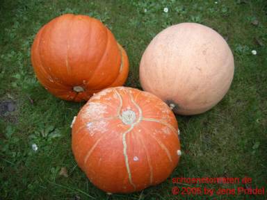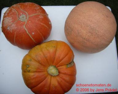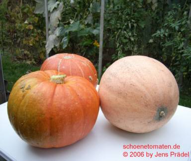 rechts Yellow Pumpkin, die beiden anderen sind ursprünglich aus Saatgut Atlantic Giant hervorgegangen, sind aber offensichtlich eine andere Sorte.