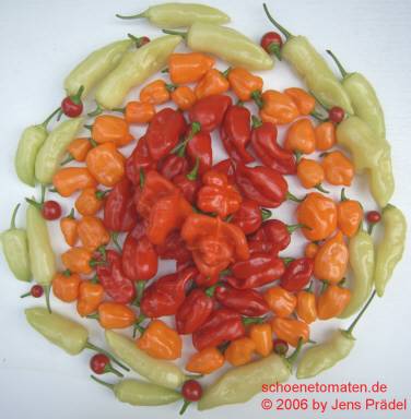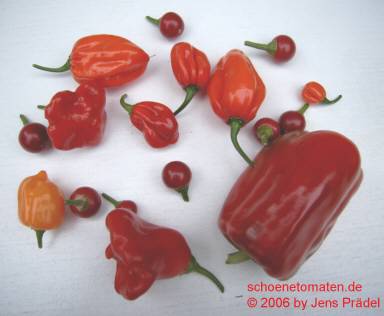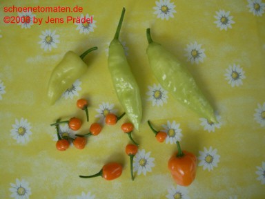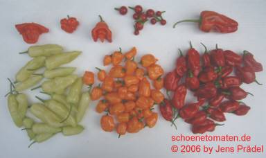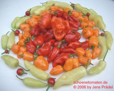 Aji Crystal, Habanero orange, Chocolate Habanero, Bischofsmütze, Starfish, Cherry, Padron