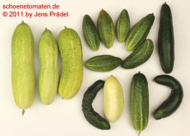 Gurken: veredelte Schlangengurke, Vorgebirgstrauben, Mervita, Kampino, Soo Yoh Long, Pointset 76