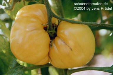 schöne, große, unregelmäßig geformte, gelblichweiße (bei Vollreife dunkelgelbe) Früchte