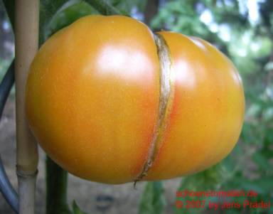 Früchte sind etwas platzanfällig. Aufgeplatzte Stellen verheilen aber schnell. |