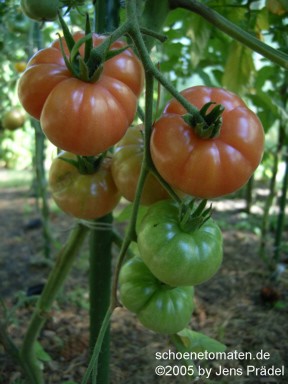 sehr große (150 bis 300 g), überwiegend runde, glatte, hellrote Früchte