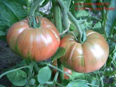 größte geerntete Frucht: 220 g (Das Potential, in einem Tomatensommer schwerere Früchte hervorzubringen, scheint aber vorhanden zu sein.)