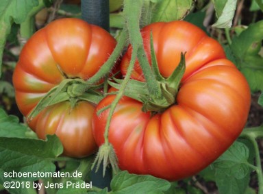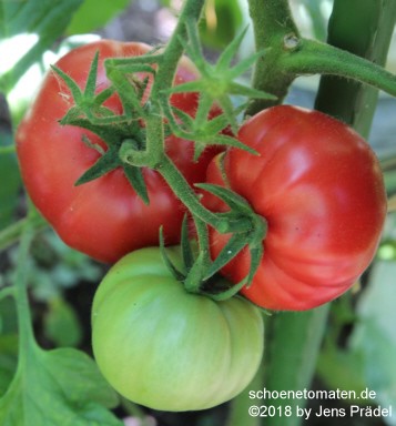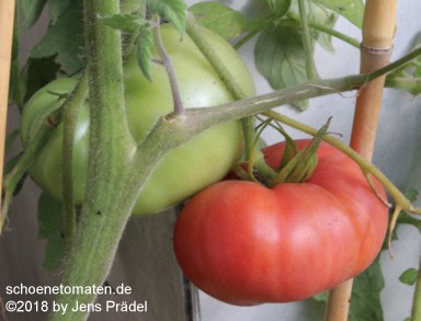 Die Früchte dieser Mini-Fleischtomate sind zwischen 15 und 40 g schwer.