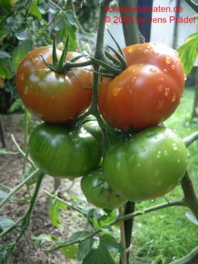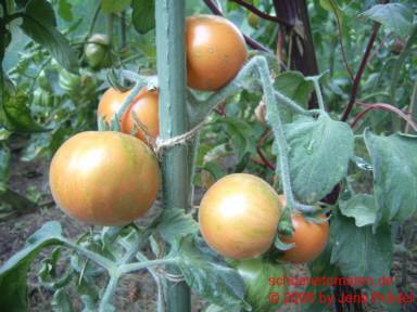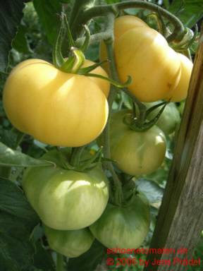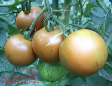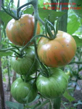 Meines Erachtens keine Fleischtomate, wie im Sortenbuch des SamenArchivs erwähnt. maximal 3 Fruchtkammern |