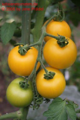 Anmerkung: Eigentlich Samen der Sorte "Red Garden Peach" ausgesät, der aber offensichtlich nicht ganz sortenrein war, sondern mit einer gelben Sorte verkreuzt wurde. Bis auf die Farbe passen alle anderen Eigenschaften zur Beschreibung der Sorte "Red Garden Peach". |