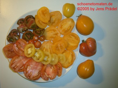 Kleiner Teller: Carotina, Golden Glow, Black Cherry, Johannisbeertomate, Moneymaker