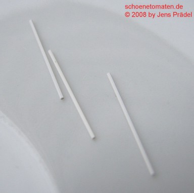 Den Keramikstift möglichst zentral in die Tomatenunterlage gesteckt...